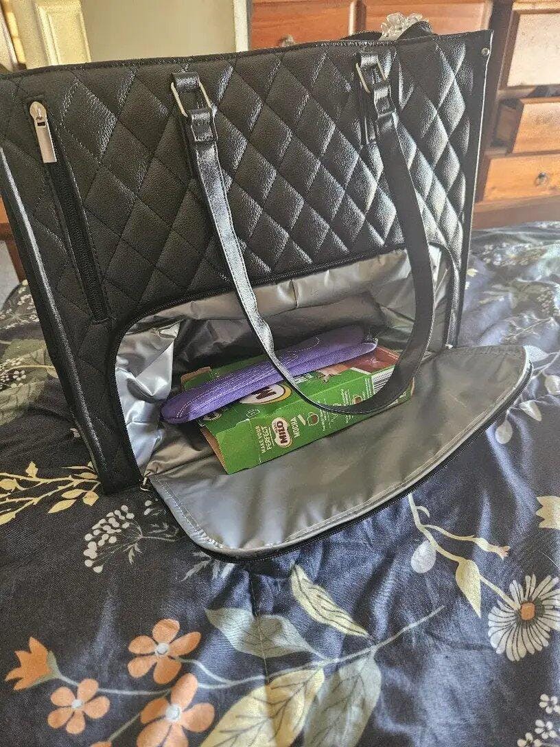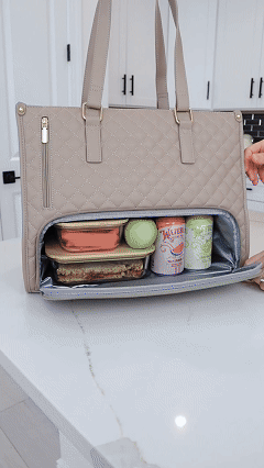 El compartimento térmico es amplio pero discreto. Está diseñado para acomodar lo esencial de forma ordenada sin abultar tu bolso. Puedes llevar tu comida sin que parezca que llevas una lonchera.